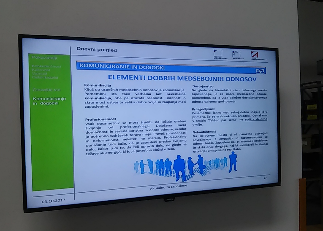 Zaposleni v podjetju so vodstvu preko anket zadovoljstva izrazili željo po boljši komunikaciji in več informacijah o dogajanju v podjetju.  V ta namen smo poleg mesečnih sestankov z zaposlenimi uvedli tudi podajanje informacij preko LCD zaslonov.  Informacije ki jih predstavljamo zaposlenim so razdeljene v tri sklope:  doseganje ključnih pokazateljev v procesu proizvodnje, človeški viri  ter komuniciranje in ostali dogodki.  Vsebine sprotno prilagajamo potrebam in aktualnim temam.
